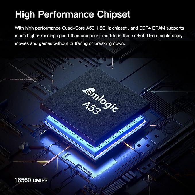 - Powerful Processor: Equipped with an Amlogic S905X2 quad-core 1.8GHz (ARM Cortex-A53) and ARM Mali-G31 MP2 CPU, ensuring smooth and fast performance.